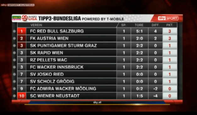 Die Tabelle nach der Runde 1
